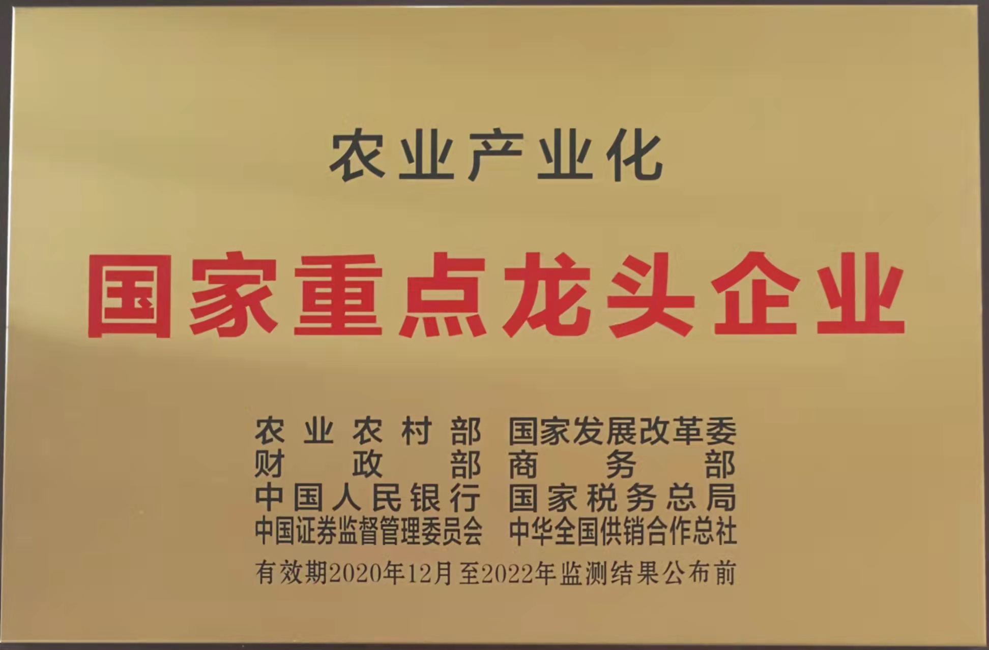 農業(yè)產業(yè)化國家重點龍頭企業(yè)(有效期至2022年)